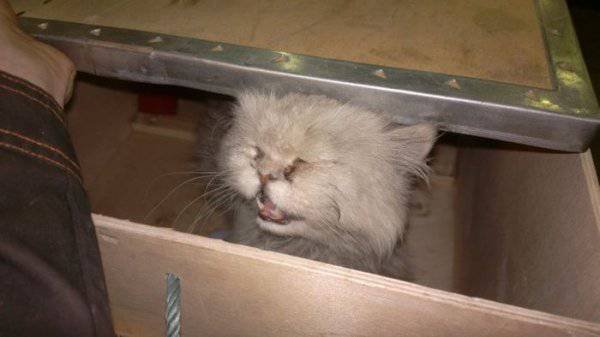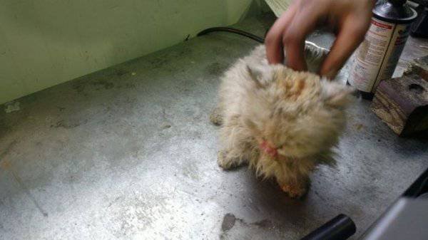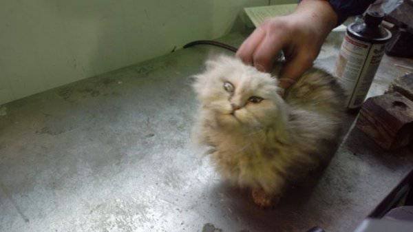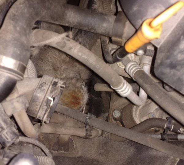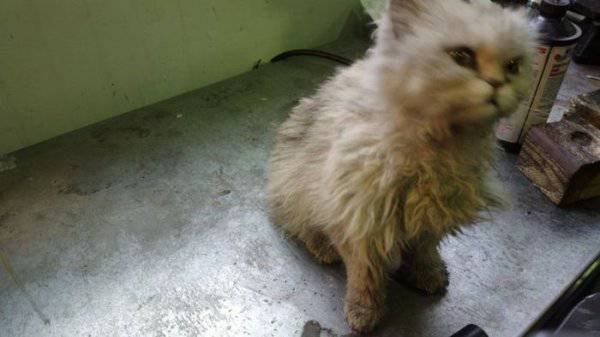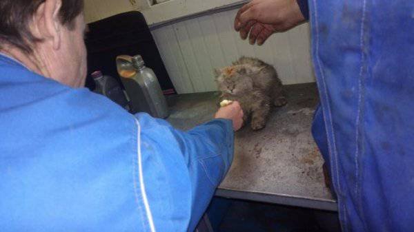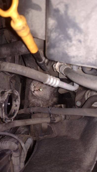 Сотрудники одного из автосервисов не на шутку удивились, когда обнаружили в моторном отсеке приехавшего к ним автомобиля потрепанного кота. Судя по внешнему виду, животное находилось под капотом несколько дней и чудом выжило. Испачканный и истощенный кот быстро пошел на контакт с людьми, и охотно ел предложенную ими пищу. Владелец машины увидел кота впервые. Никаких посторонних звуков не слышал, к тому же он живет в частном доме и держит машину в гараже.