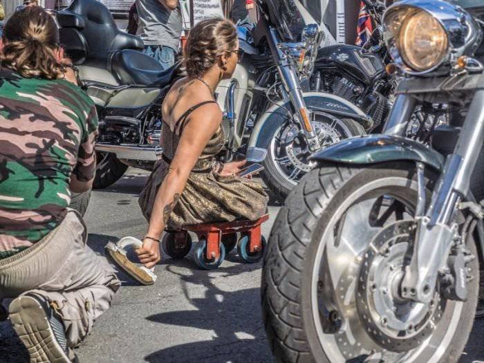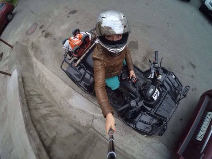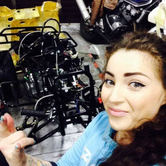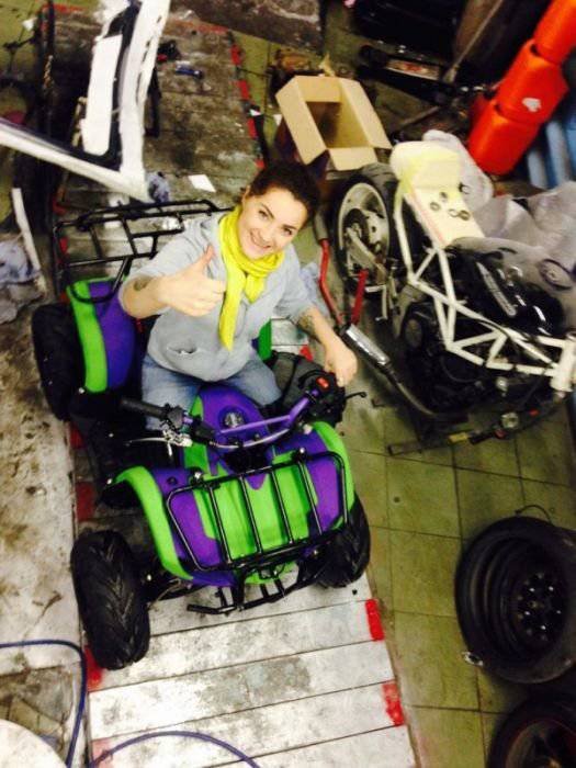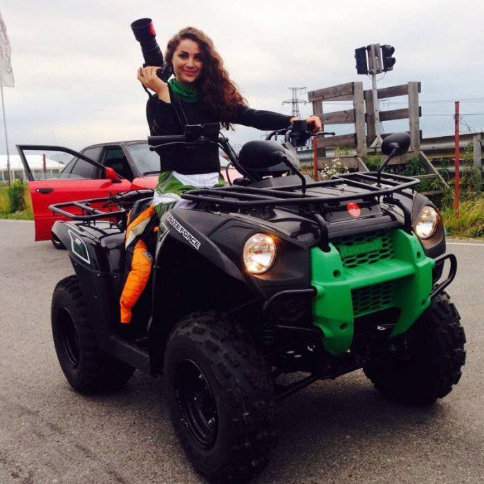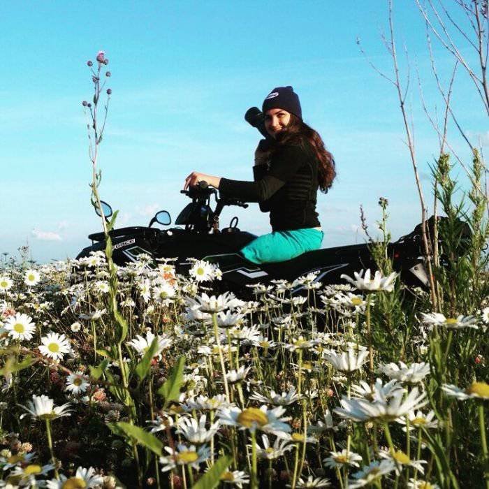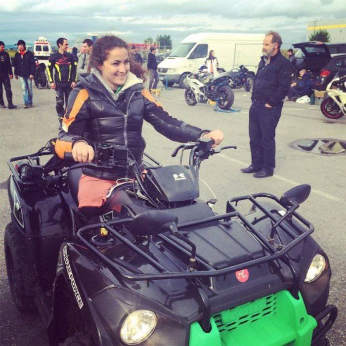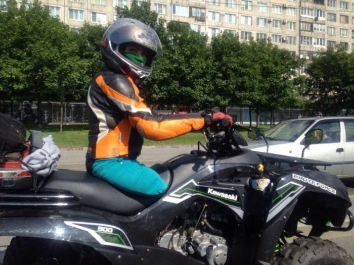 Знакомьтесь, это Вероника из Санкт-Петербурга, которая не так давно получила права и стала ездить на квадроцикле. Несмотря на отсутствие ног, она научилась не просто ездить на четырехколесном мотоцикле, но освоила некоторые навыки экстремальной езды, а также успела поучаствовать в нескольких шоу.