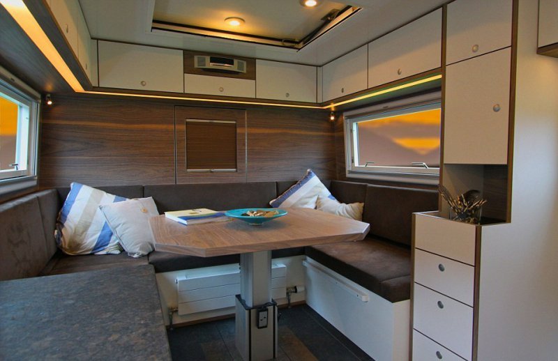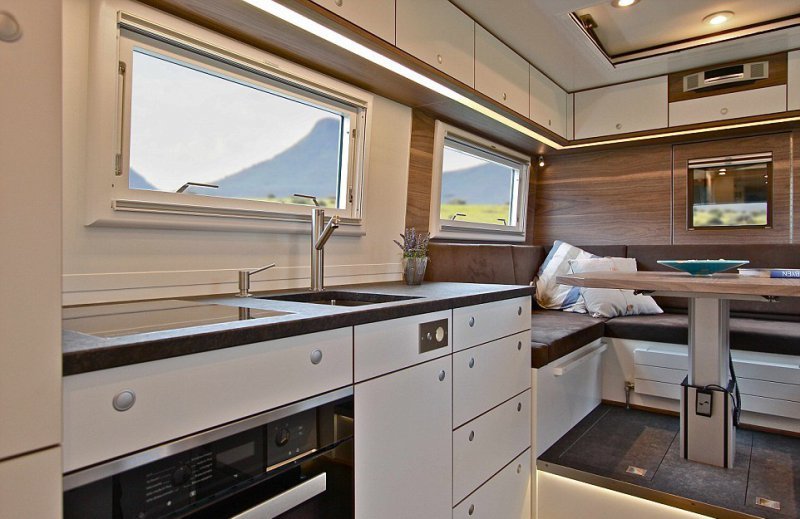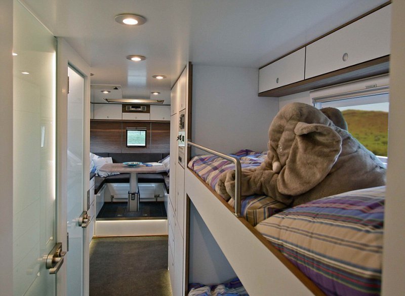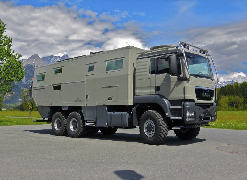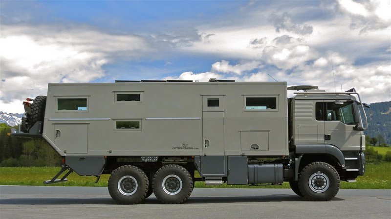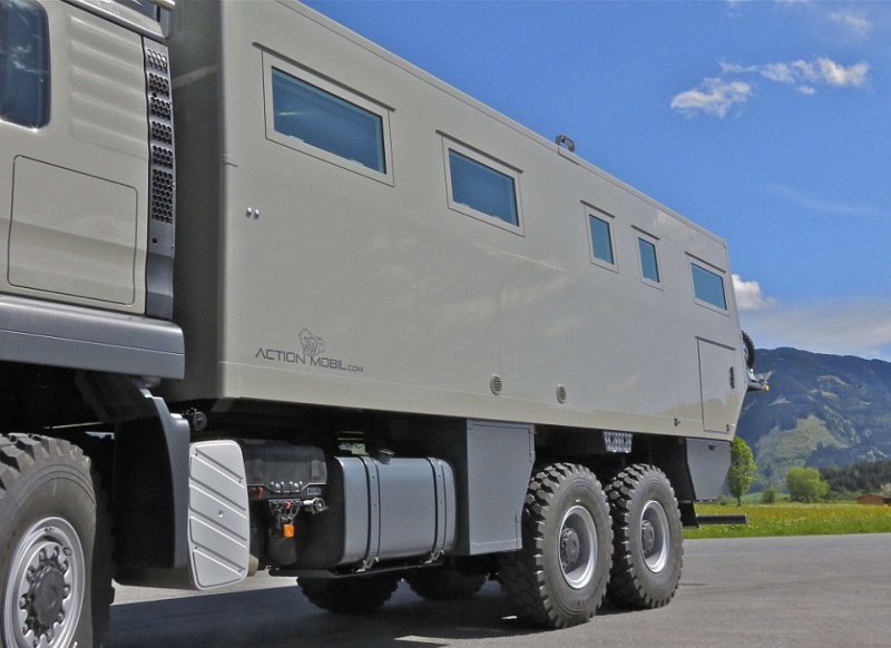 При подготовке к апокалипсису большинство людей выбирают бронированный подземный бункер, но для этих целей может подойти дом на колесах 'Action Mobil Globecruiser Family 7500'. Массивный автомобиль был разработан австрийской фирмой Action Mobil для путешественников, стремящихся побывать в малопроходимых местах. Он оснащен двигателем 530 лошадиных сил, приводом на все 6 колес и стоит £630,000 ($765,000). В кемпере с комфортом могут разместиться два взрослых человека и двое детей. Грузовик оснащен баком на 1000 литров пресной воды и солнечными батареями. В автомобиле уютная гостиная зона, кухня, ванная комната, есть даже спутниковое телевидение. Жилое помещение так же оснащено стиральной машиной и сушилкой, а на задней части есть подъемник для мотоцикла.