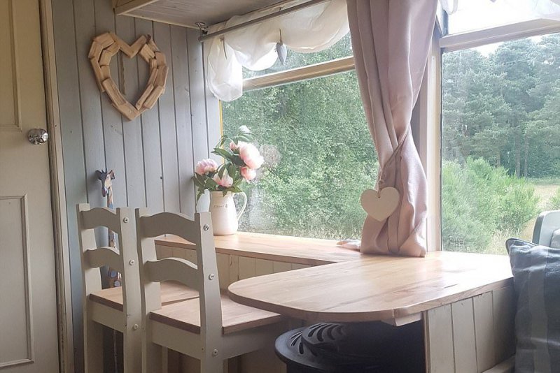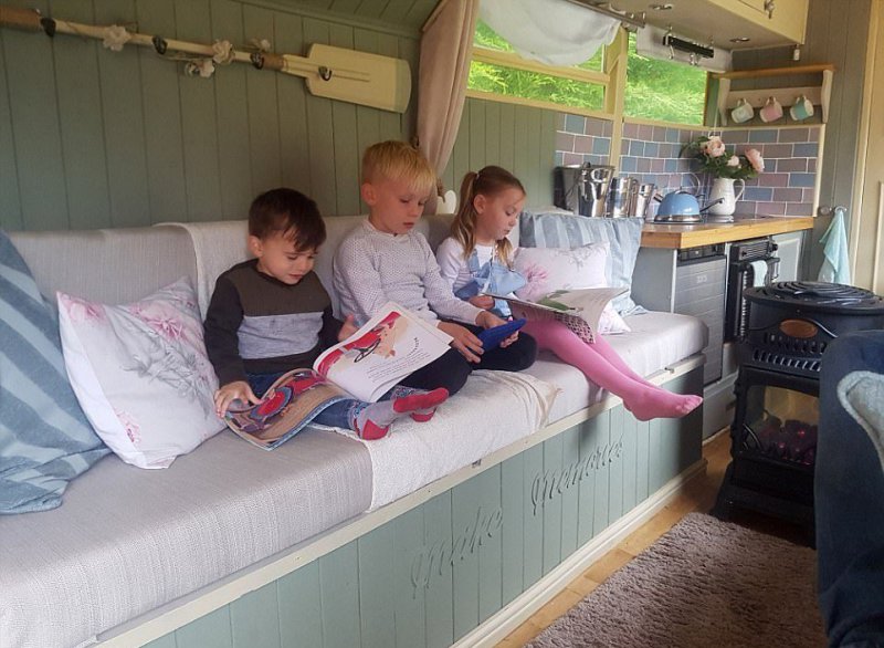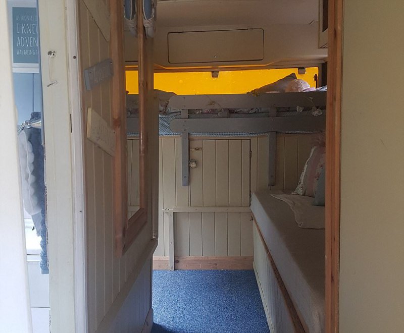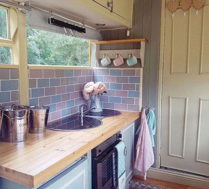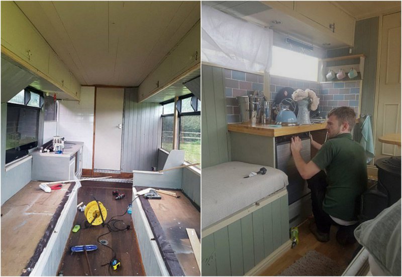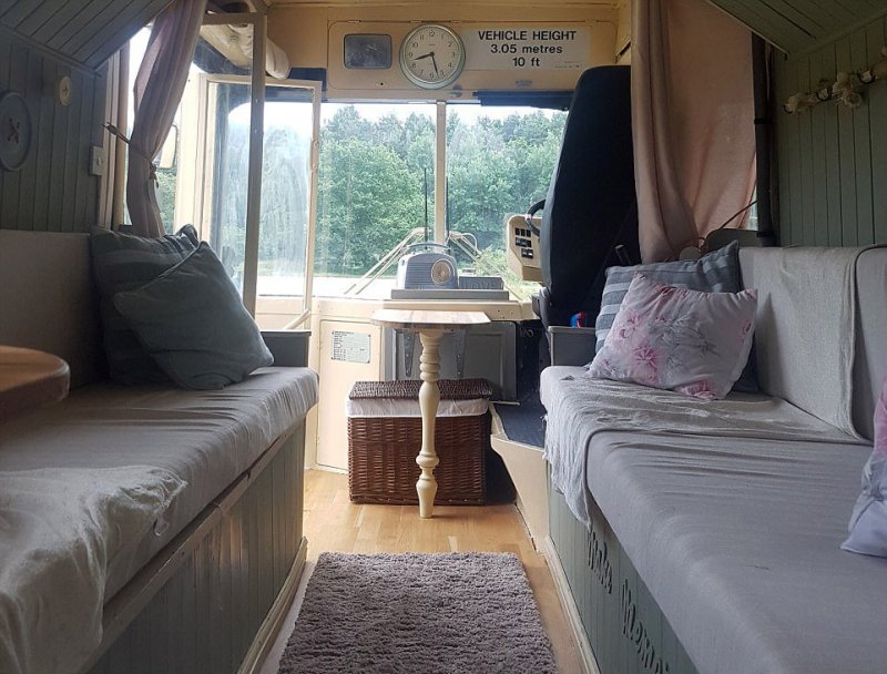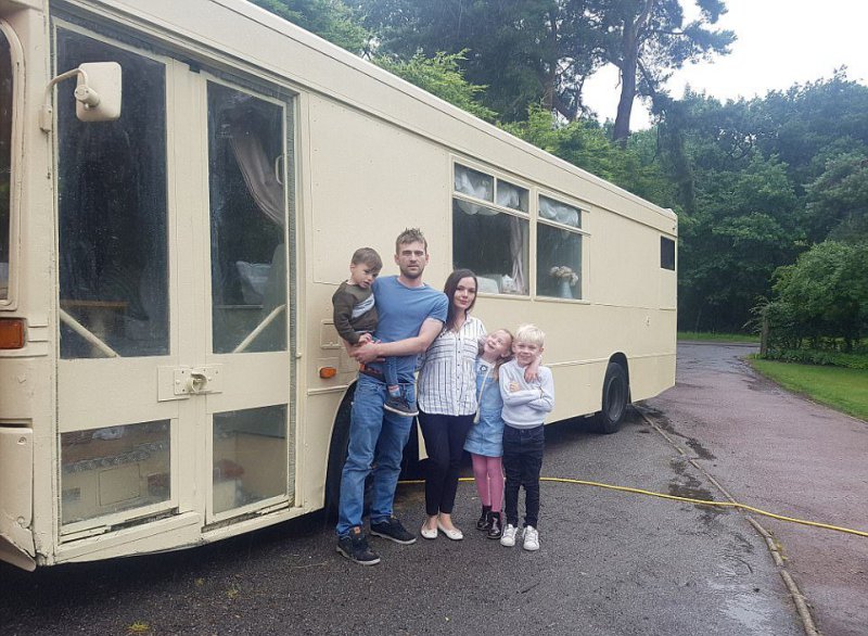 Семейная пара из Великобритании с тремя детьми купила старый рейсовый автобус в 2011 году за £1200. Том Грэнтэм и Кейли Барнс вложили еще £10000, чтобы превратить автобус в уютный дом на колесах. Внутри сделали три двухспальные кровати, плиту с духовкой, газовый камин, душ и туалет, также сохранили некоторые оригинальные черты, такие как руль, сиденье водителя, панель приборов и другие мелочи.