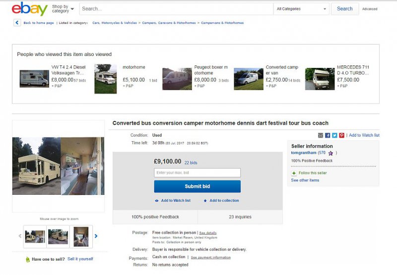 Семья пользовалось автобусом с 1993 года для поездок на фестивали и семейные праздники во Францию и Бельгию. Сейчас семейная пара выставила автобус на продажу через eBay, на данный момент цена составляет чуть более £9000, торги закончатся в понедельник. Том добавил: "Дети расстроены тем, что мы продаем автобус, но пришло время для нового вызова".