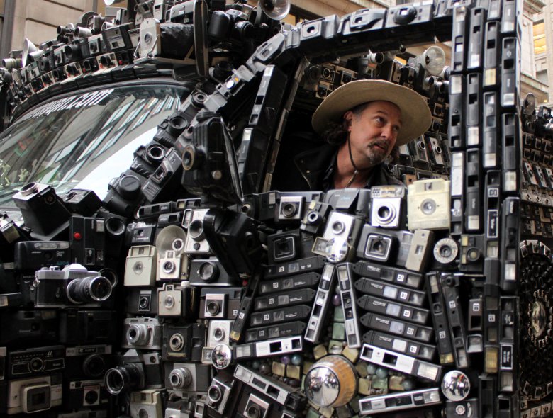 Камеры, которыми обклеен автомобиль, выбраны не случайным образом: например, на решетке радиатора находятся все фотоаппараты Polaroid, сделанные с момента основания компании до 1993 года, а собрать такую коллекцию непросто. Другие фотоаппараты тоже распределены по группам.