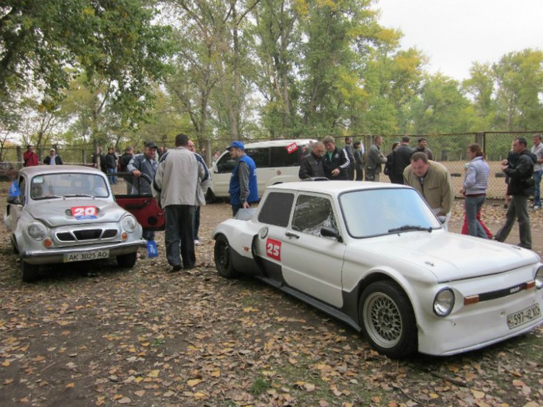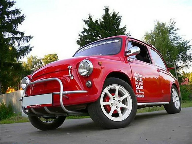 Блестящий тюнингованный запорожец ярко-красного цвета.