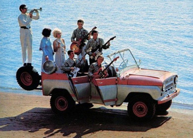 УАЗ — лучший вид транспорта для банды гастролирующих трубадуров. Расцветка автомобиля просто немыслимая.