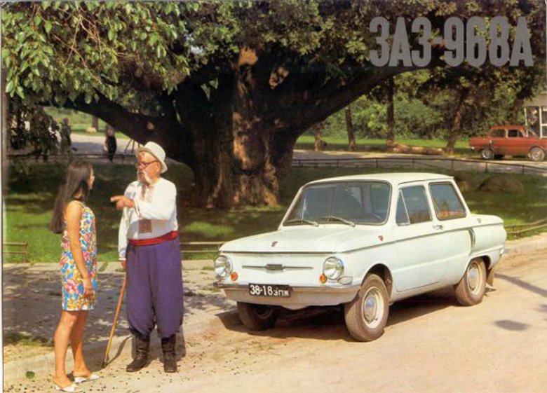 В СССP красную «феррари» заменяла красная «буханка». Обратите внимание, как мужчина в модной майке поло кокетливо осматривает девушку в красном платье, а та смотрит на свою подругу.