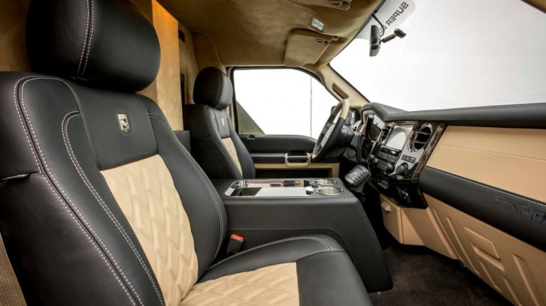 Уникальный производитель автомобилей US Specialty Vehicle, основанный в Калифорнии, США, создал впечатляющий бронированный внедорожник USSV Rhino GX Executive. Доступны бензиновый или дизельный двигатели, модель GX Rhino может похвастаться огромным 6.8-литровый V10 двигателем (или 6,7-литровый V8 турбо дизелем) с полным приводом и пятиступенчатой автоматической коробкой передач в стандартной комплектации. Но главное — удобство и безопасность пассажиров. Салон оборудован двумя удобными креслами, 40-дюймовым телевизором, спутниковым телевидением и многим другим.