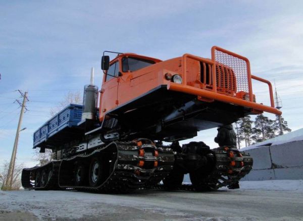 В конце 1960-х годов в Советском Союзе началось проектирование крупного грузового автомобиля, который мог бы передвигаться в самых сложных условиях. В московском институте НАМИ разработали новейшую конструкцию т.н. вагонного типа, когда стальная рама опирается на две тележки с гусеничной тягой.