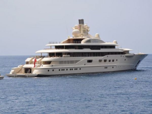 «Затмение» Романа Абрамовича. Стоит такая яхта около 1.1 млрд долларов. Длина судна составляет 163 метра. Помимо прочего на ней есть кинотеатр, салон красоты, две площадки для вертолета, бассейн, танцпол и бронированная спальня олигарха.