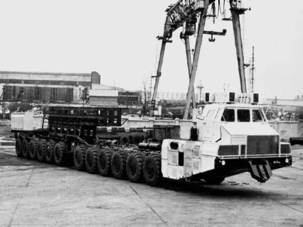 Опытный тягач, созданный для установки ракетного комплекса «Целина-2». У машины было 24 колеса, каждое из которых было тяговым. В середине 80-х было создано 2 таких агрегата. Проект умер вместе с Советском Союзом. Сегодня оба 7907 (или точнее то, что от них осталось) находятся в Беларуси, где из них собирают один для музея предприятия.