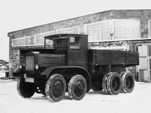 Разработка и производство многоколесных автомобилей в Советском Союзе началась именно с этой машины. Это был первый советский грузовик с колесной формулой 8х8. Создано это чудо было еще в 1932 году. Ездил «монстр» на 8.2-литровом 6-цилиндровом двигателе Continental-22R мощностью 120 «лошадей». Благодаря ему 20-тонная машина разгонялась до 45 км/ч. К сожалению, развитие прототипа забросили.