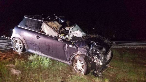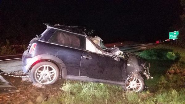 В Кэмптоне, штат Нью-Гэмпшир, произошло столкновение машины с лосем. От мощного удара авто вылетело с дороги и приземлилось среди деревьев. Водитель смог выйти из машины, а вот пассажир оказался в ловушке, и доставать его из покореженного авто пришлось спасателям. Водитель получил незначительные травмы, пассажиру же не повезло — он в больнице в тяжелом состоянии. О самочувствии лося не сообщается.