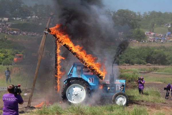 «Шоу» началось уже в первые минуты — участники второго заезда первого этапа устроили нечто, что сотрудники полиции называли бы ДТП, если б это происходило на дорогах общего пользования. Кстати, расходы по восстановлению техники после соревнования полностью берет на себя организатор турнира, поставщик отечественной и зарубежной сельхозтехники агротехнологический комплекс «Бизон».