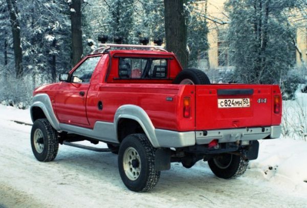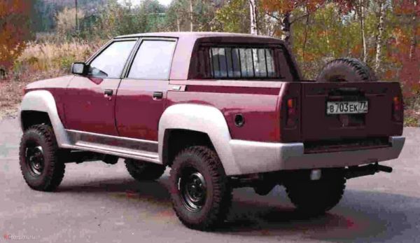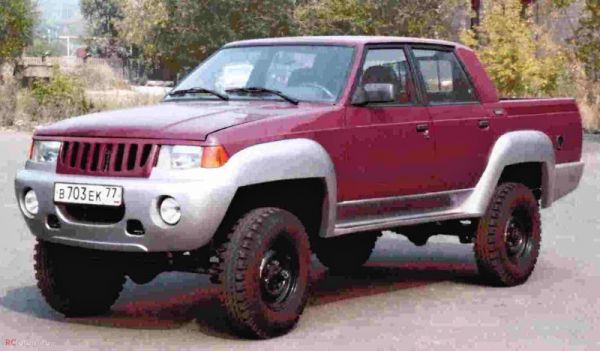 При довольно щедром финансировании проекта и использовании заводских узлов «Гренадер» был выполнен словно на коленке. Чего только стоил несуразный пластиковый обвес по периметру, призванный «овнедорожить» умиротворенную внешность пикапа, и столь же «миловидная» (хотя и практичная) трубчатая подножка. Под стать внешним стилистическим «изыскам» был «облагорожен» интерьер «москвичевской» кабины, который «украсили» трансмиссионными уазовскими рычагами. При габаритах кузова 1450х1870 мм «Гренадер» мог похвастать внушительной грузоподъемностью в 800 кг.