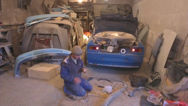 Когда с технической частью было покончено, Андрей перешел к работе над внешностью автомобиля. Он создал заготовку для капота, а передние крылья модифицировал таким образом, чтобы они сочетались с передней частью от автомобиля Москвич-2140. Передний бампер изготовили из стеклопластика, как и некоторые другие элементы интерьера.