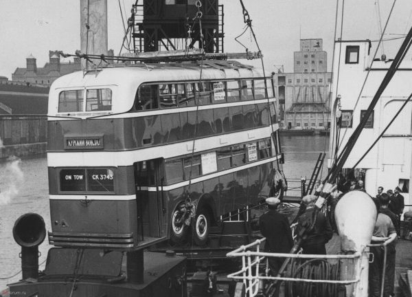Отгрузка троллейбуса English Electric для Москвы в одном из портов Великобритании, 1937 год