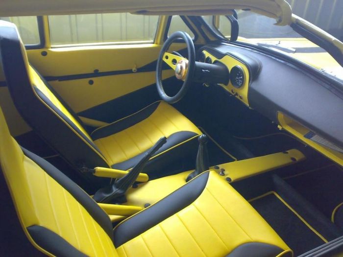 Интерьер автомашины был оформлен в ярком спортивном стиле, имел ковшеобразные раздельные передние сиденья и развитую центральную консоль, композиционно объединенную с панелью приборов.