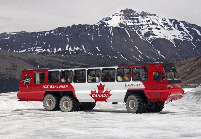 Автобус строился для эксплуатации в сложных условиях – лед, мягкий грунт в горной местности. Цель доставлять персонал в необходимые точки или катать туристов по суровым, но красивым местам, как, например, “Ледовое поле” в Канаде, причем читал отзыв нашего соотечественника, который лично был туристом пассажиром в “Иване”, если коротко передать его слова: “Едешь как на аттракционе, удивительно то, что он может заезжать в гору, покрытую льдом и также успешно с нее спускаться”.