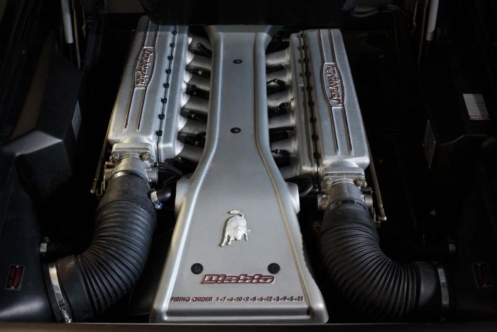 Практически 30-летний Lamborghini Diablo с точки зрения техники неплохо выглядит даже на фоне современных спорткаров: он оснащён двигателем V12 объёмом 5,7 л, мощностью 492 л.с. ДВС сочетается с механической коробкой передач и системой полного привода. До 100 км/ч суперкар разгоняется менее чем за 4 секунды, а максимальная скорость доходит до 325 км/ч.