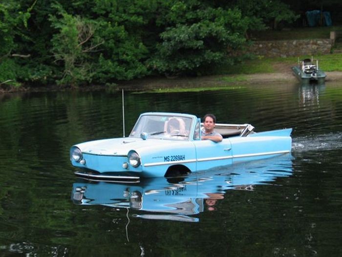 Автомобиль-амфибия Amphicar выпускался с 1961 по 1968 годы, достигал 112 км/час на суше и 11 км/час на воде. Концепция выглядит круто, и у этого автомобиля до сих пор есть фанаты, которые поддерживают последние оставшиеся образцы на плаву. Проблема в том, что Amphicar плох и как машина, и как лодка. А хуже всего то, что он начинает стремительно тонуть, стоит хотя бы ненадолго заглохнуть насосу, который откачивает воду.
