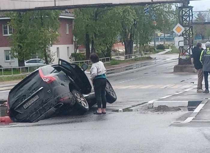 Местные жители сообщили, что котловану уже больше полугода. Автолюбители знают про опасный провал и аккуратно объезжают его.