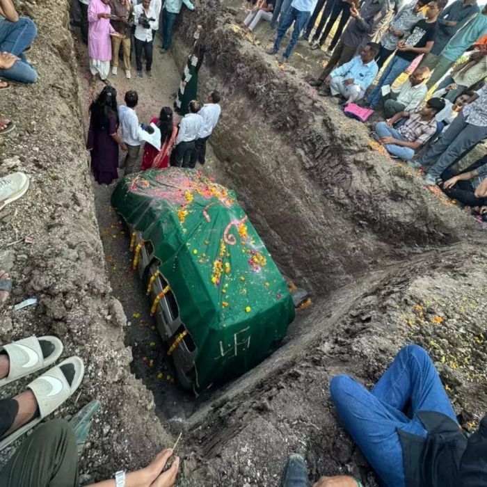 Торжественное мероприятие в Индии было посвящено автомобилю Suzuki Wagon R, который 12 лет прослужил своим владельцам на ферме.