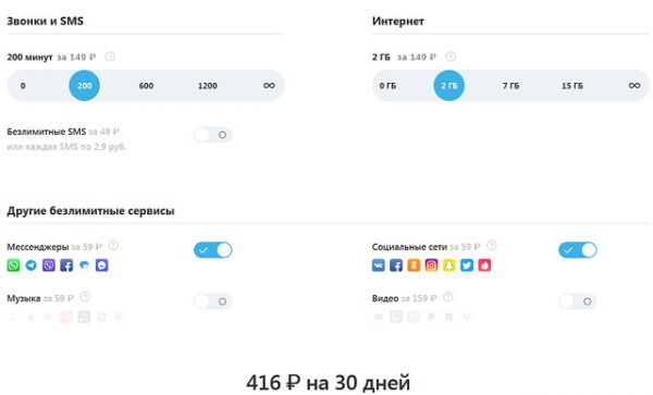 Надо заметить, что и «СберМобайл», и Tinkoff Mobile работают на базе Tele2, где уже давно есть возможность настраивать пакет услуг под себя.