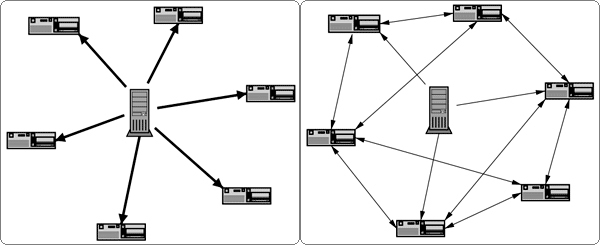 Файлообменники и сайты имеют обыкновение урезать скорость скачивания, создавая «бутылочное горлышко», которое никак не избежать из-за наличия в системе всего двух участников. Для скачивания мелочёвок, вроде mp3, это не критично, а если фильм? Брэм, очень хотел создать что-то действительно полезное для людей и решил, что можно разбить файл между компьютерами и совместно скачивать друг у друга. Тем самым обойти «узкое место».