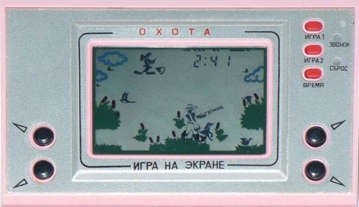 Точно такой же гаджет появился в СССР в 1984 году под кодовым названием «Электроника ИМ-02». С тем лишь отличием, что по жидкокристаллическому экрану двигался волк знакомой наружности.