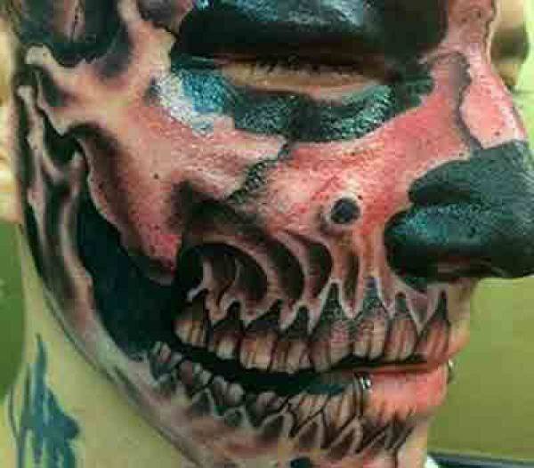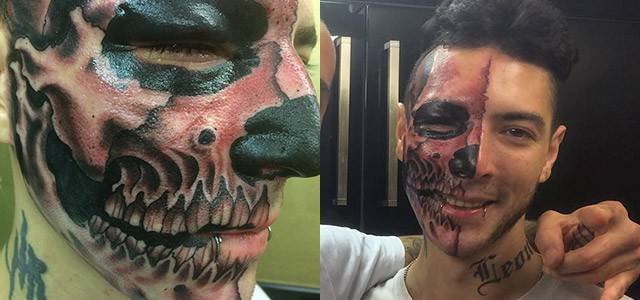 Татуировки на коже лица становятся все более популярными в последнее время, причем далеко не все ограничиваются небольшими надписями или рисунками. К категории таких людей относится и этот парень, который превратил половину своего лица в настоящий череп.