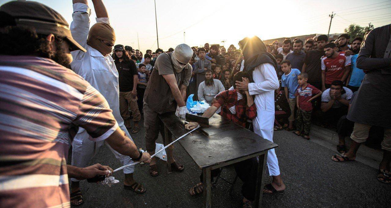 Внимание +18! Свежие кадры из Мосула, города на севере Ирака, в данный момент находящегося под контролем ИГИЛ. Пропагандисты Исламского государства распространили фото расправы над базарными воришками. Мужчины уже второй раз попались на воровстве, а, значит, по законам Шариата обязаны лишиться кисти рук. Экзекуция была совершена через 10 минут после вынесения приговора при большом скоплении зевак.