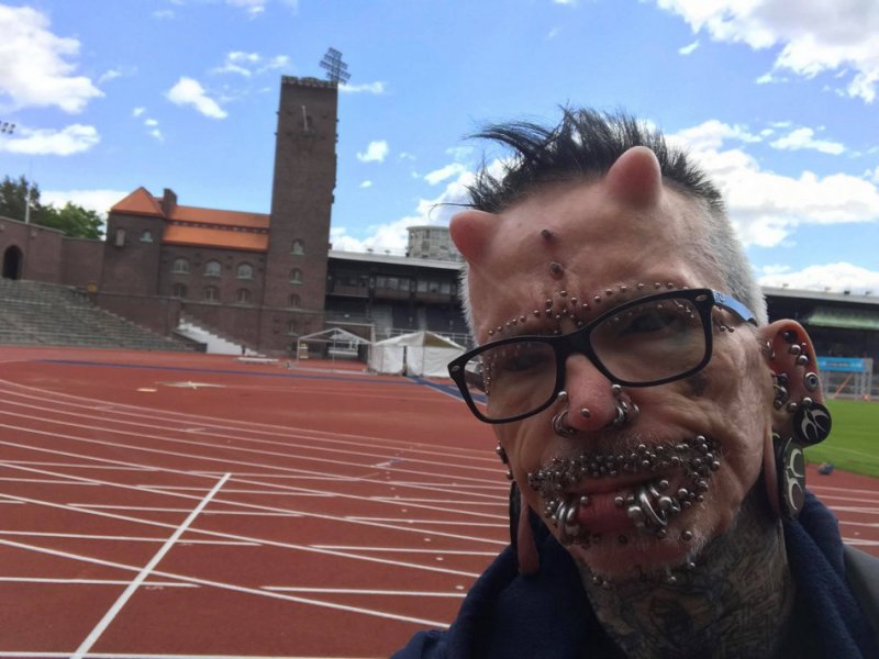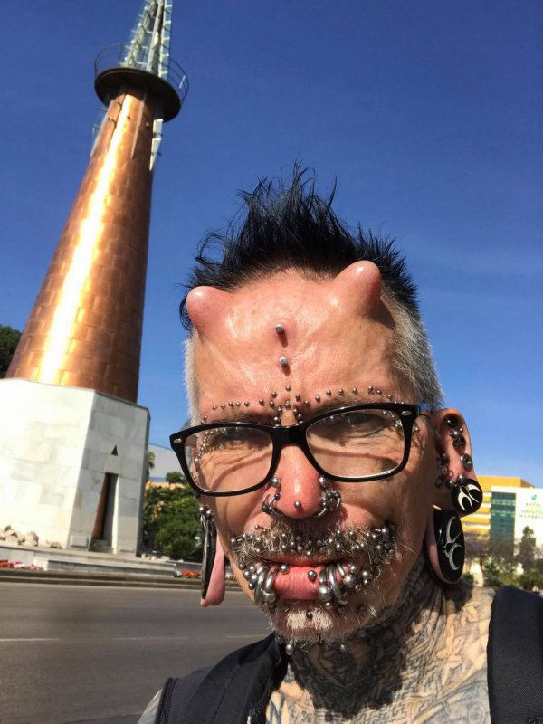 Кстати, чувак кроме пирсинга носит еще ряд модификаций, отлично себя чувствует, его постоянно приглашают на какие-то мероприятия, так что без дела не сидит. Жалуется только на то, что в аэропортах у него куча проблем. Ну конечно, в трусах поди звенит как будто там пистолет!