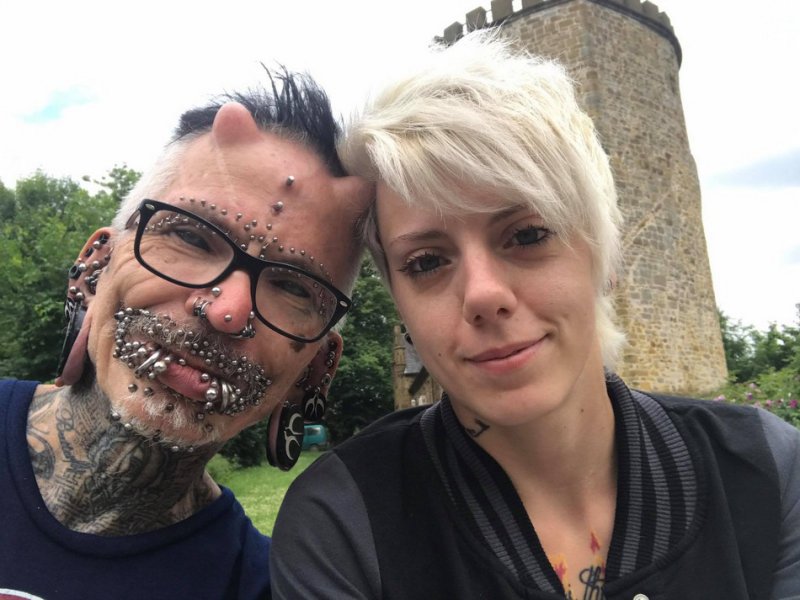 58-летний Рольф Букхольц — рекордсмен из Книги Рекордов Гиннесса. Этот немец является самым напичканным пирсингом человеком в мире. Официально на Рольфе висит 453 железяки. Из низ 94 – на губах.