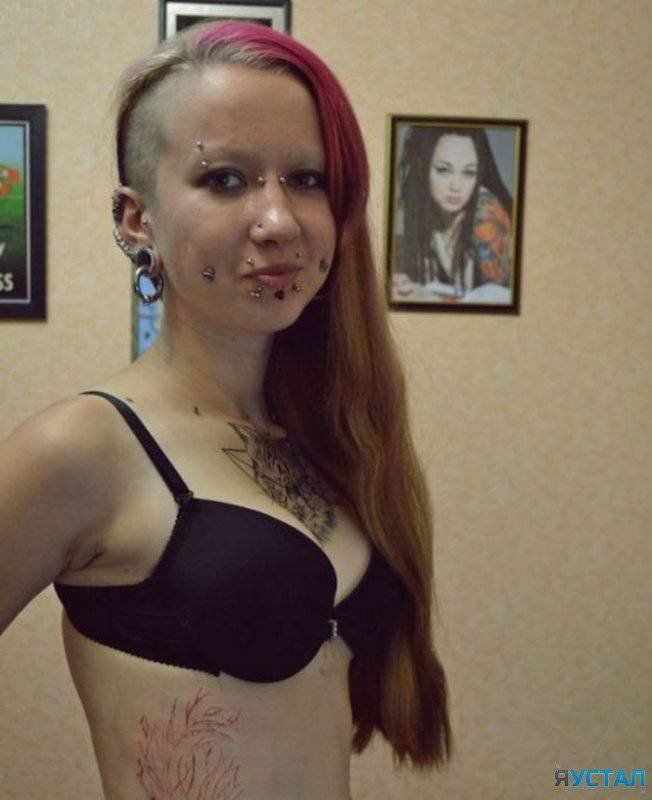 Давайте посмотрим на то, как всего за два года эта привлекательная девушка превратила себя в настоящего "монстра", благодаря модификациям своего тела. А ведь начиналось все с банального пирсинга - и тут понеслось... С каждой новой модификацией, по моему мнению, эта девушка становилась все менее и менее привлекательной.
