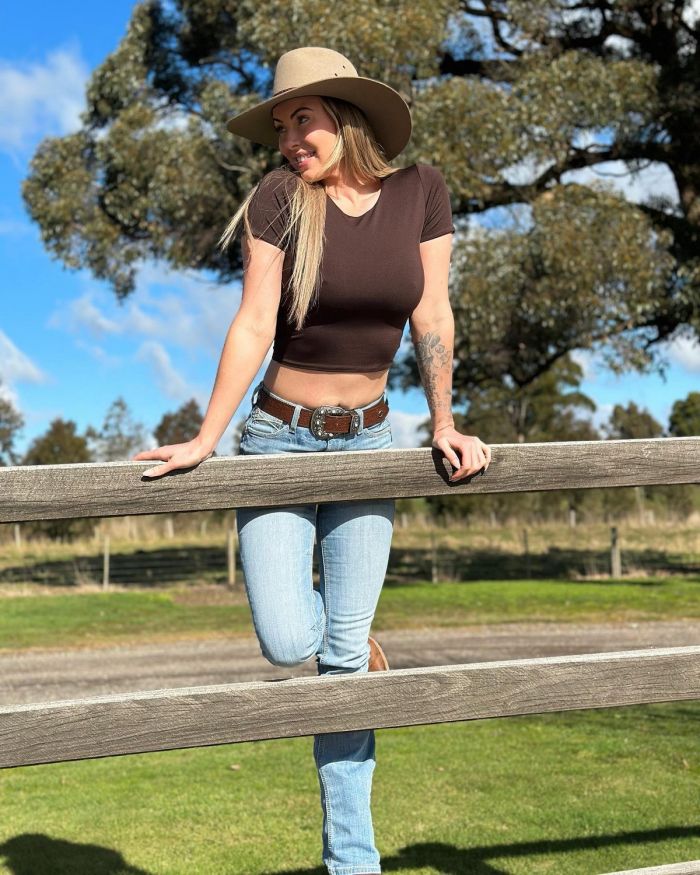 С помощью своего мужа Хэнка, который работает в FIFO, она построила прибыльную карьеру, снимая одежду и выполняя повседневные обязанности на ферме.