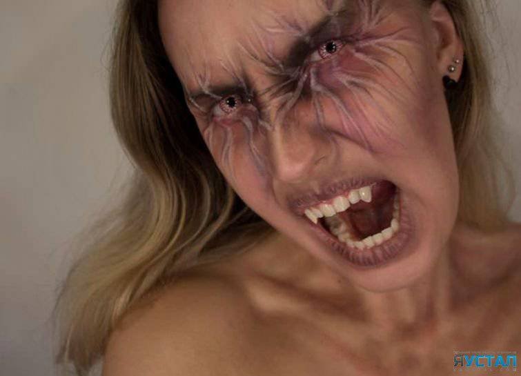 26-летняя Сандра Холмбом любит экспериментировать с макияжем и может по праву гордиться своим умением. С помощью косметики девушка научилась создавать жуткие и пугающие образы, в лучших традициях самых мерзких фильмов ужасов. Одна из последних её работ - карнавальная маска из кожи! Девушка признается, что она самоучка и искусство макияжа для неё просто хобби.