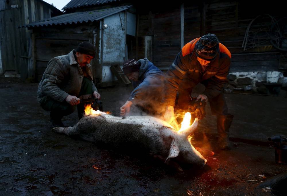 Кого-то эти кадры могут шокировать, но меня, человека проводившего все каникулы в деревне, они не пугают. С первыми морозами всегда было принято в деревнях резать свинью для свежего мяса. Самый неприятный и трудный момент — само убийство. Потом свинью смалят бензиновой или газовой лампой, скребут, моют и разбирают. Эти кадры сделал фотограф Василий Федосенко/Reuters в деревне Азераны (Беларусь) 12 декабря 2015 года.