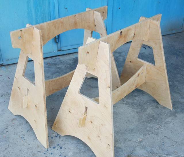Постоянно что- то мастерю в гараже, но верстака нет и ставить не куда. Поэтому долго присматривался к разным разборным системам. На одном из "рукастых" форумах наткнулся на разборные кОзлы. Вот такие. Мне подходят.