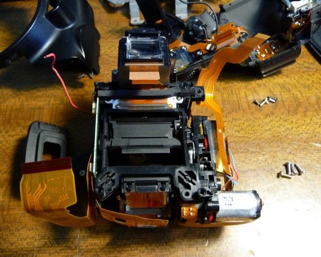 Долго ли коротко ли, а залез в самую серидину и оттяпал от тушки сам затвор в куче с зеркалом и приводом. Разборки с приводом ни к чему не привели. Сам двигатель крутит хорошо, и ток потребляет не шибко большой. А гугл врёт, что с него надо начинать...