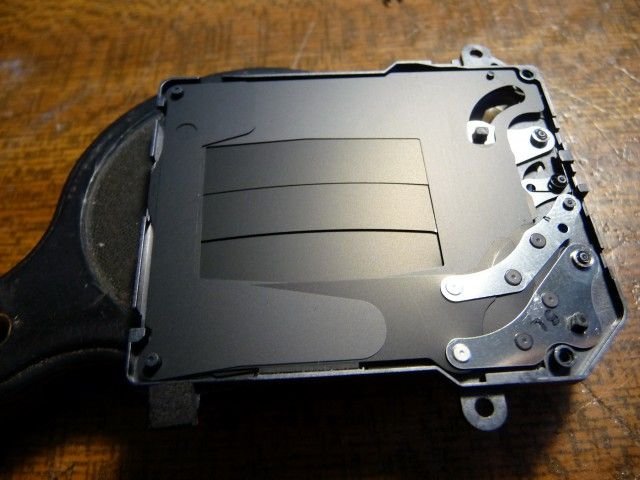 Короче, глаза боятся а руки делают. Отцепил механизм со шторками от основного корпуса затвора. Зеркало, мотор и остальная требуха в сторону и смотрю дальше.