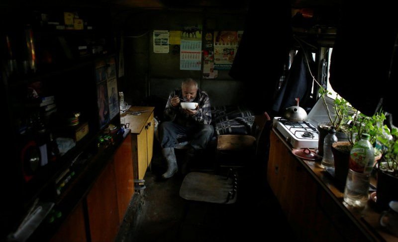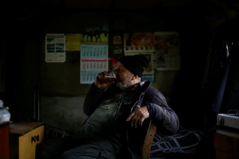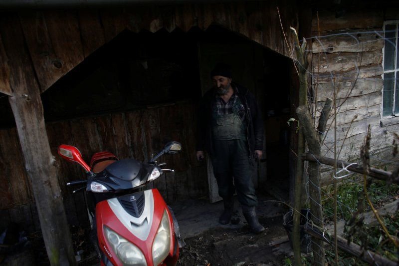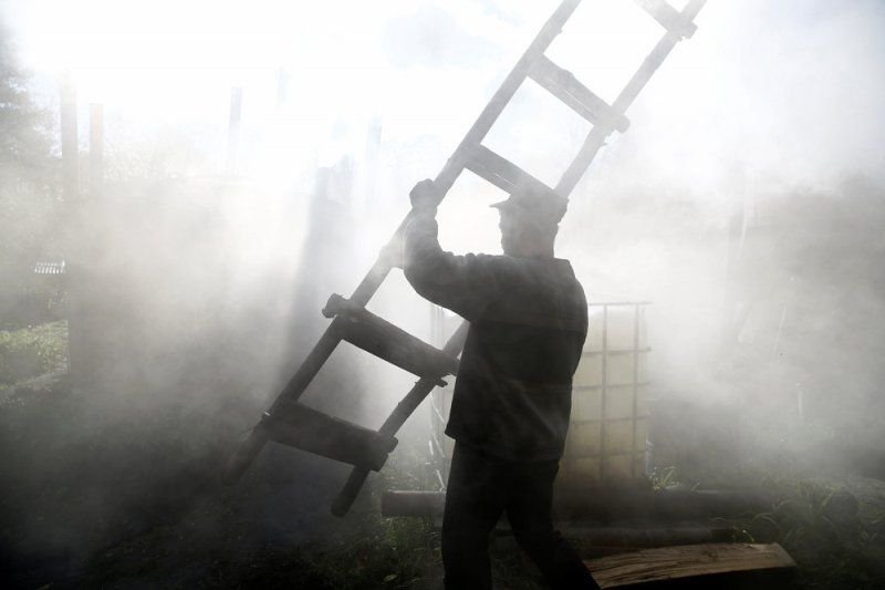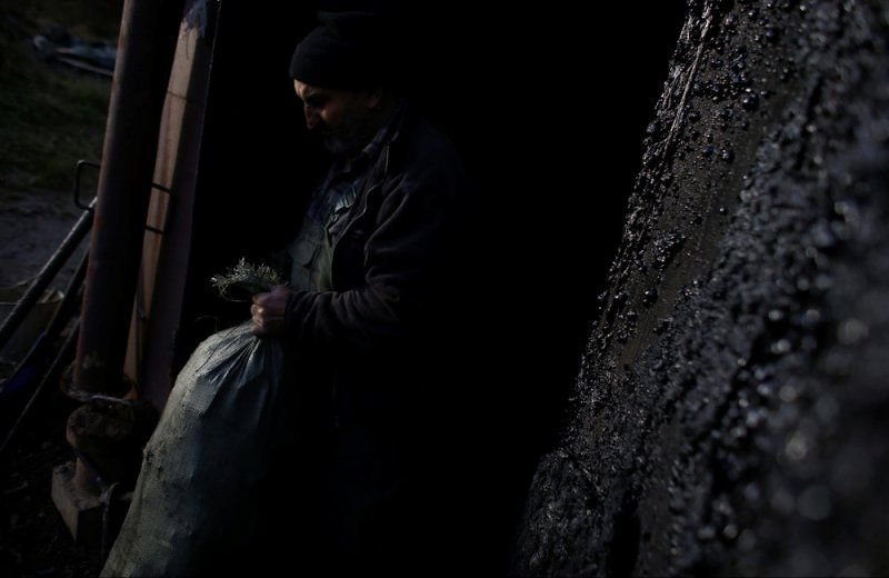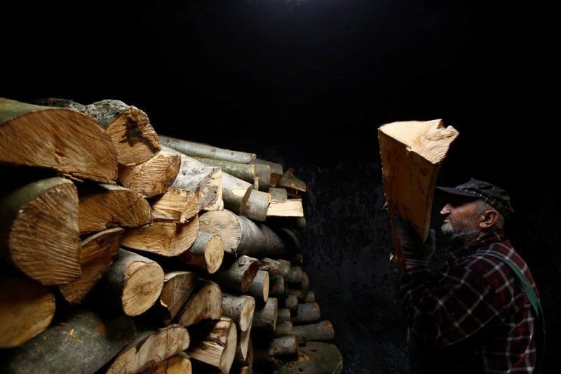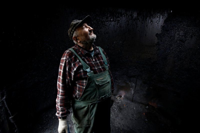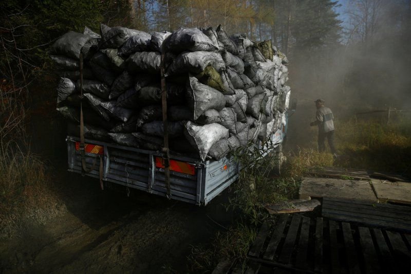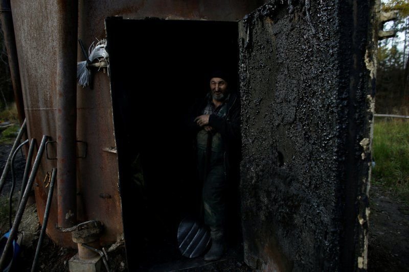 69-летний Zygmunt Furdygiel тратит четыре часа на загрузку бревен из бука в большие печи, затем поджигает. Дерево тлеет два дня, еще два дня оно остывает, на пятый день уголь можно забирать. Зигмунт работает в качестве угольщика уже более 40 лет, превращая дерево в черный карбон. Он один из немногих угольщиков, которые по-прежнему работают в горах Бещады, возле села Балигруд, Польша.