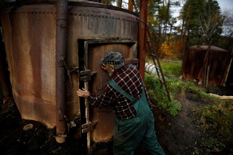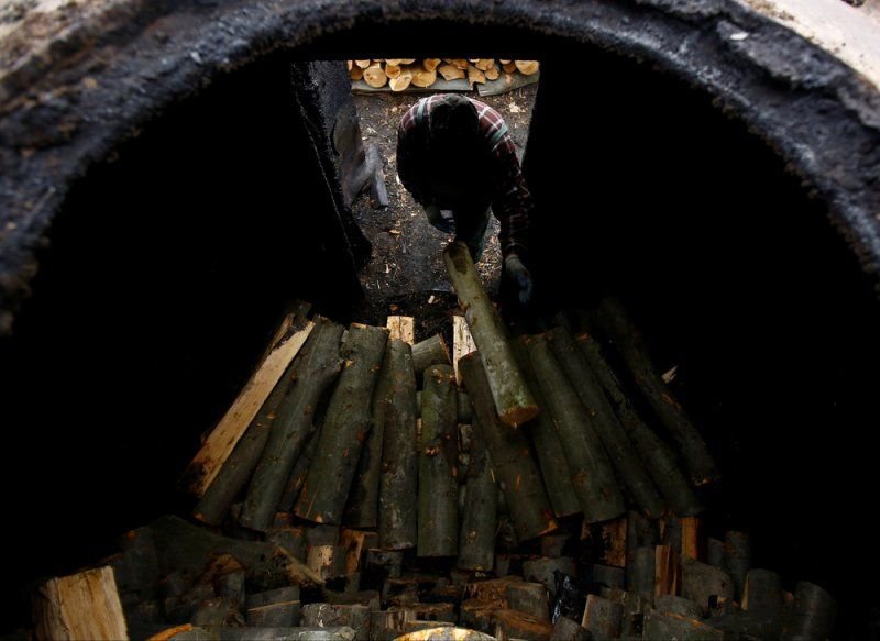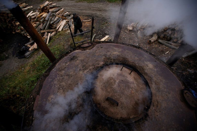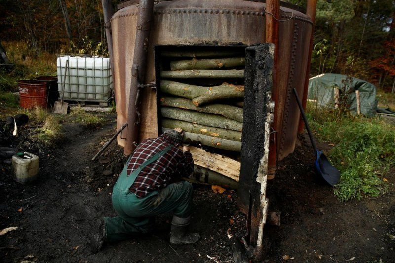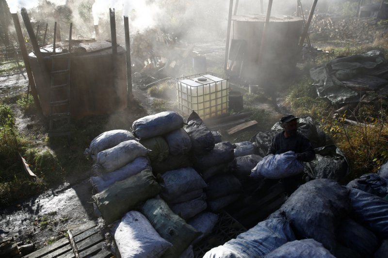 У Зигмунта четыре печи, их называют «retorts». По данным областного управления национальных лесов Польши, 16 лет назад было более 50 таких баз производства угля в Бещадах, оборудованных более 600 печами. Сегодня их менее 10, на которых около 40 печей. Производство умирает из-за более дешевого импорта из соседних стран, таких как Украина.