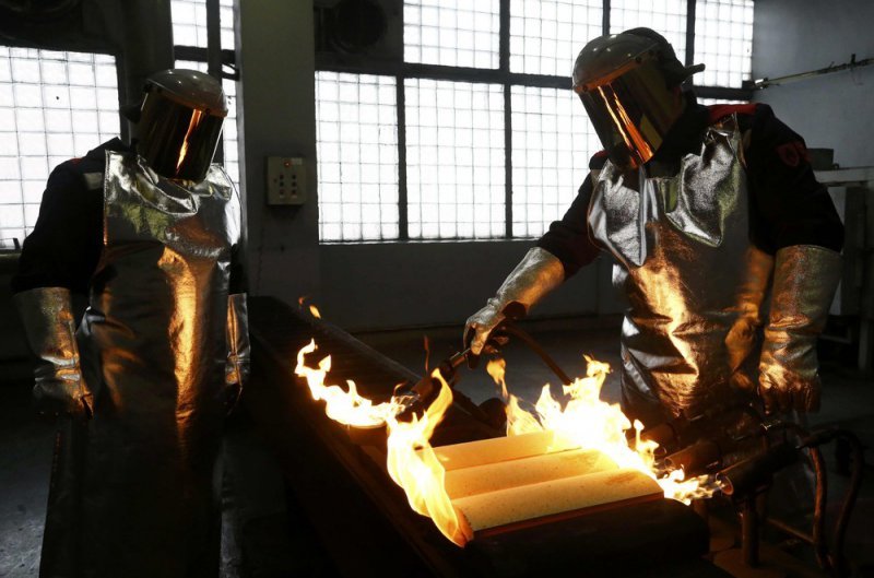 Приокский завод цветных металлов в городе Касимов перерабатывает минеральное и вторичное сырье, содержащее драгоценные металлы с получением аффинированных золота, серебра, платины, палладия, родия, иридия а так же производит продукцию в виде их сплавов, солей и ювелирных полуфабрикатов. Слиткам из отходов ювелирного производства, радиоэлектронного лома и других материалов, содержащих драгоценные металлы, на Лондонской бирже драгоценных металлов присвоен статус "Good Delivery". 14 февраля фотограф Сергей Карпухин побывал на этом предприятии и сделал несколько интересных снимков.