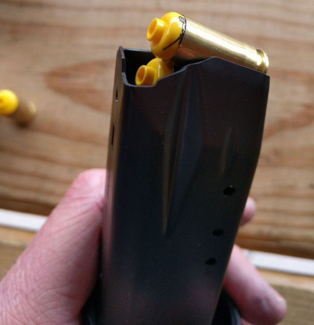 Наглядная инструкция по стрельбе головами от фигурок Лего, вставленных в гильзы. Опыт довольно удачный - лего-пуля пробила полотенце и пустую картонную коробку, а во время полевых испытаний даже застряла в мишени. Правда, первый блин вышел комом из-за перегородок в голове фигурки.