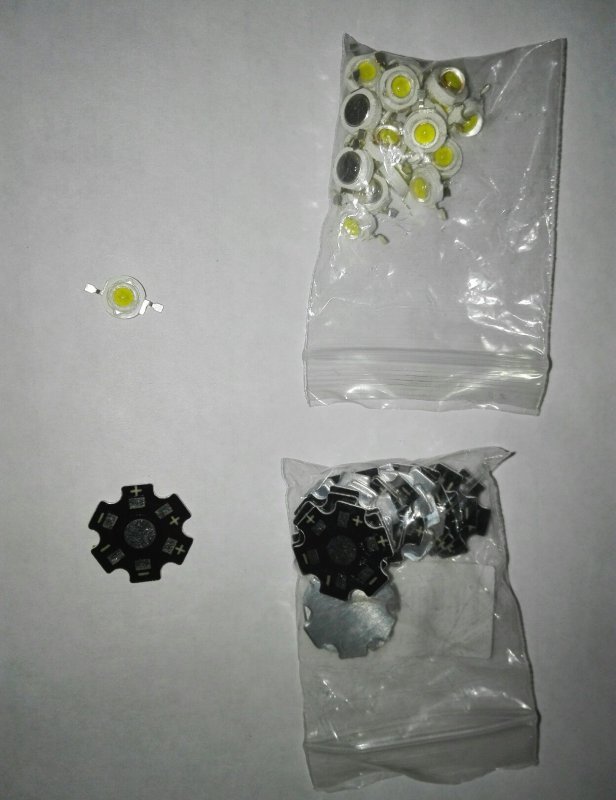 Светодиоды с радиаторами. В последствии вынужден был от них отказаться, т.к. оказались паршивого качества