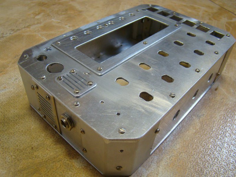 Основной материал для корпуса - алюминий. Примерные размеры - 18х16х7см.