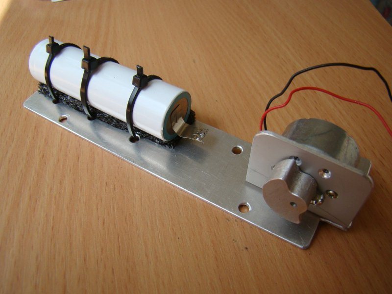 Аккумулятор (18650) и вибра размещены на специально обученной планке.