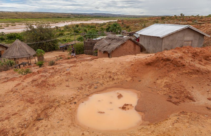 Закинули вещи в трактор и поехали через реку Mananara к месту назначения. Речка вроде и мелкая, но с мягким дном. Обычная машина не проедет, только трактор. Все остальные подъезды или завалены или заминированы - буквально.