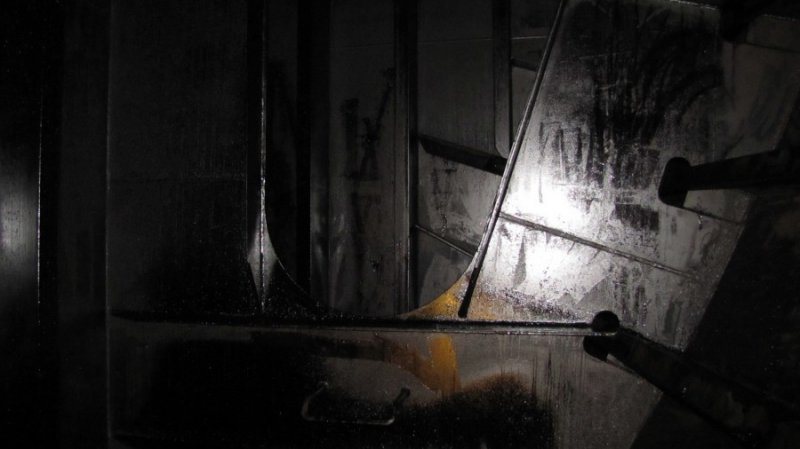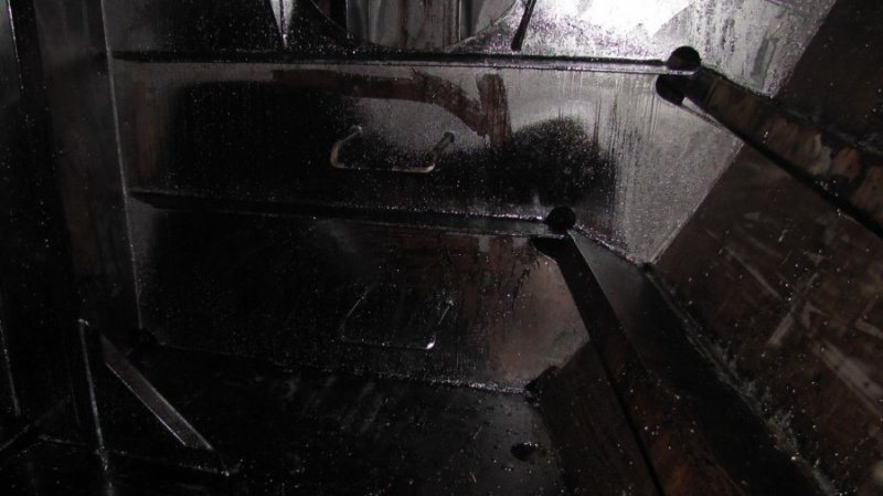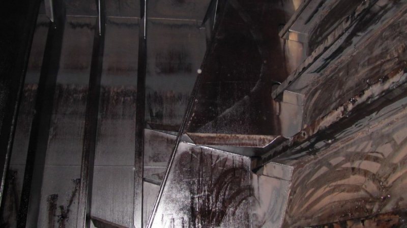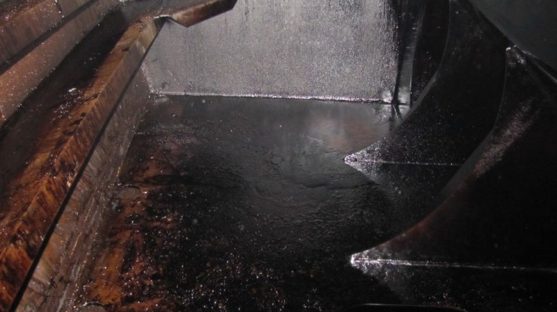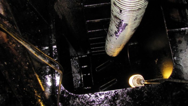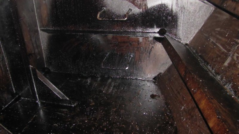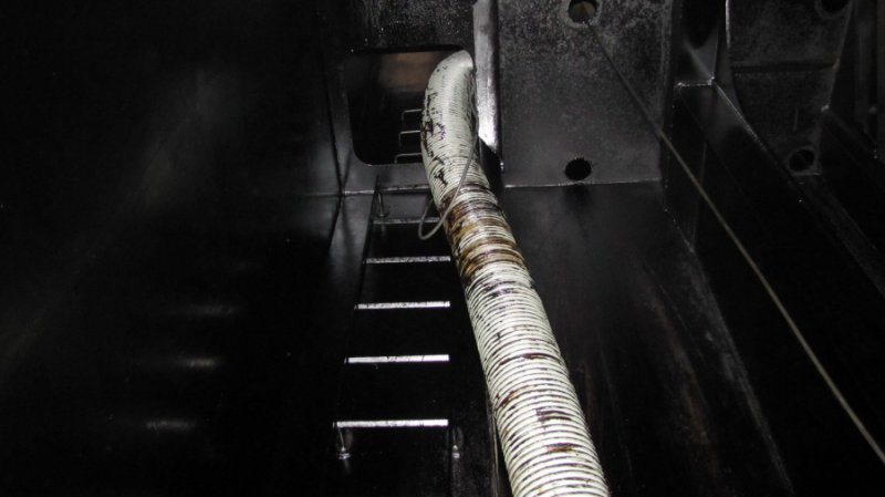 Подача воздуха в самый ад. Самый подвал. Дно у танка не ровное, а на скос и на сужение. И всё в слое отложений.