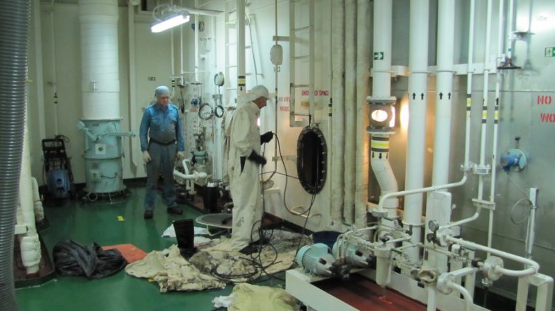 А в Штатах другая беда. Там на мазуте совсем запрещают работать, только дизтопливо. Танк запаса дизтоплива у нас не очень большой. В основном это дизтопливо мы берём для работы генератора инертных газов. А тут вдруг замаячила перспектива попасть во фрахт США - Канада на озёра, и работать пришлось бы только на дизтопливе. Что ж, надо освобождать один мазутный танк, и готовить его под дизтопливо.