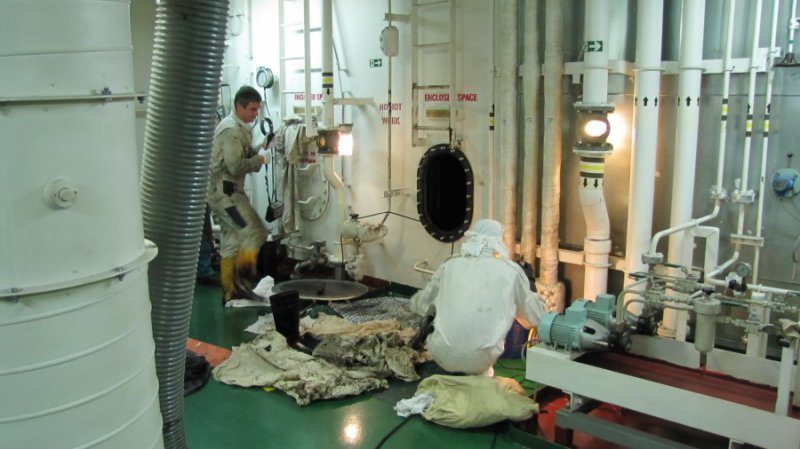 Но не только главный двигатель жрёт это топливо. Ему очень успешно помогают вспомогательные дизель-генераторы, паровые котлы и установки генерации инертного газа.